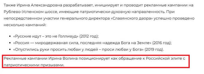 А в комментах к этой публикации барышню Волину вообще называют сумасшедшей: «она уже давно свихнулась…», «бухает Иринка?», «порошка нанюхалась», «на это 152 млн рублей «поддержки» выделили?», «на фашизм смахивает», «за такое явное лизоблюдство хозяйке агентства должно быть стыдно!».