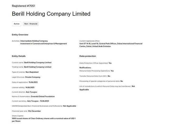 Также известно, что Ойбек Турсунов являлся руководителем двух компаний в Великобритании: O&B TRADING LTD (компания ликвидирована в 2011 году) и D.A.V. INVEST LTD (ликвидирована в 2010 году)