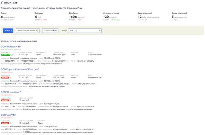 В далеком, 2009 г. даже стал фигурантом некоего дела по обвинению в вымогательстве. Деньги как раз вымогали у г-на Коковина, который входил в совет директоров ЗАО ""Иркутский завод розлива минеральных вод".