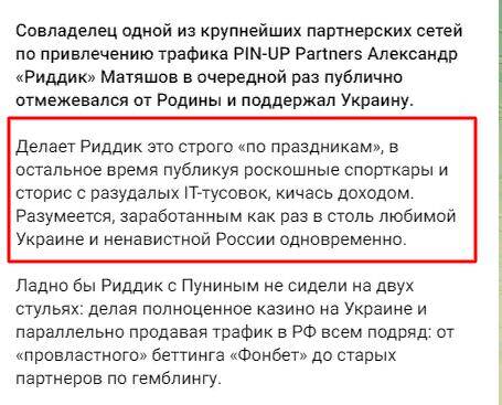 ООО «Пин-ап.ру» в 2022 г., заметая следы, поменяло название на ООО «Фонкор», его учредителем вместо Александра Удодова стало АО «Клир Центр», принадлежащее Максиму Кузнецову, за которым стоит Александр Карманов, хороший знакомый прокремлевских олигархов Аркадия Ротенберга и Геннадия Тимченко. В 2023 г. ООО «Фонкор» получило выручку 436 млрд руб. и прибыль 59 млрд руб. Деньги из компании могут выводиться в офшоры через казино Дмитрия Пунина. Вряд ли Михаил Мишустин отказался от курицы, несущей золотые яйца.