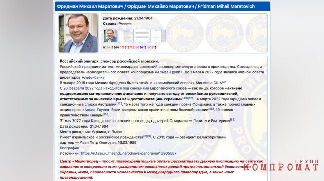 Фридмана можно понять: несмотря на то что олигарх всегда комплиментарно высказывался об Украине, его внесли на одиозный сайт "Миротворец", объявив все его активы законной целью для Украины.