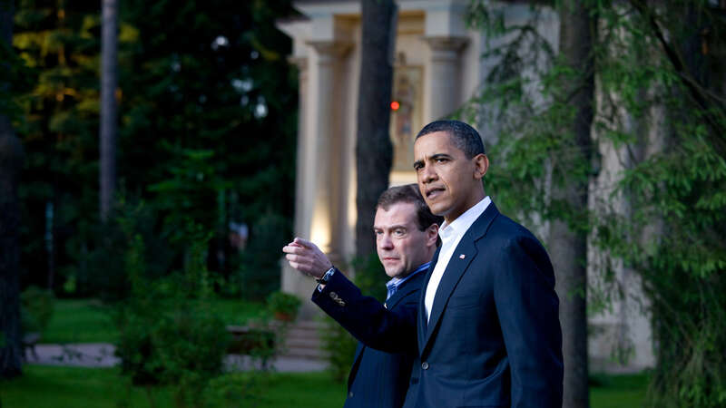 Дмитрий Медведев принимает президента США Барака Обаму в резиденции «Горки-9» в 2009 г. / Pete Souza / Official White House