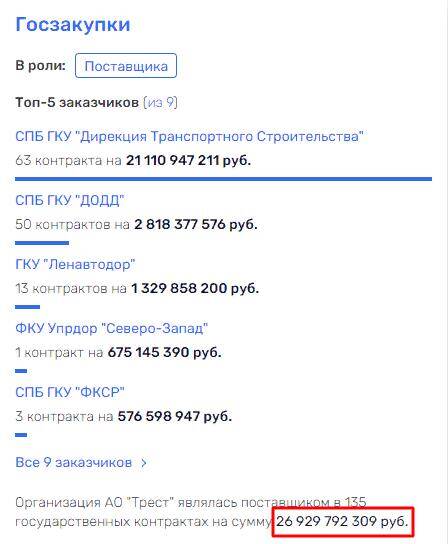 Еще одним инвестором фейкового робопса может быть известный питерский строитель Сергей Рышкевич, до недавнего времени владелец АО «Трест», которое в 2023 г. получило выручку 5.5 млрд руб. и прибыль 126 млн руб. Сумма контрактов с госструктурами Санкт-Петербурга в этом году уже перевалила за 5 млрд руб., что говорит о лояльности властей города к компании.