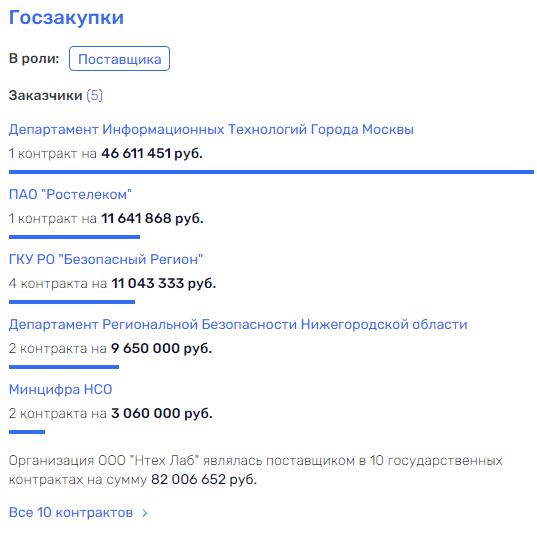 Самый крупный заказчик - Правительство Москвы через Департамент информационных технологий (42 млн рублей). Ранее The Moscow Post не раз писал о скандалах департамента и его главы Эдуарда Лысенко, человека, близкого к мэру Москвы Сергею Собянину.