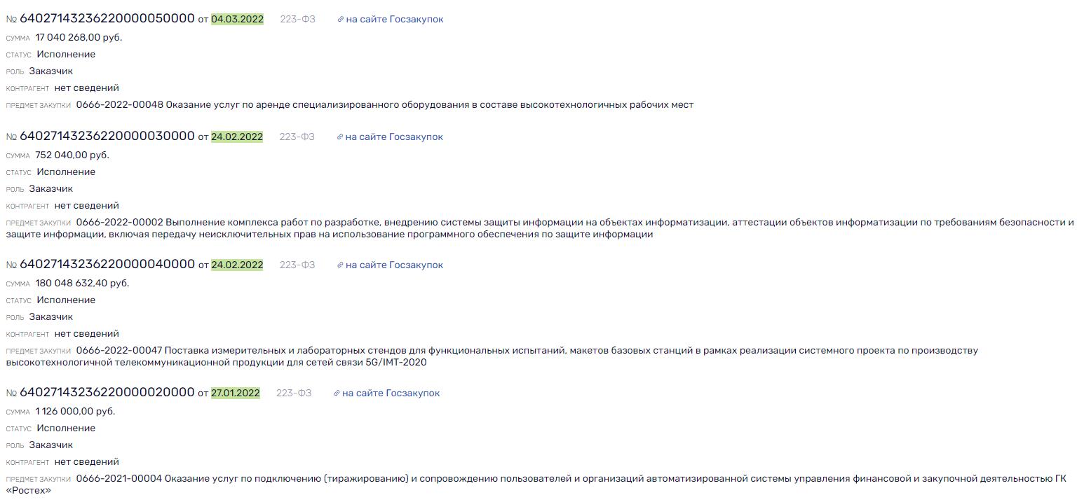Основанная в 2020 году компания уже успела заключить восемь государственных контрактов на общую сумму 361 млн рублей. Причем контрагенты почти во всех случаях неизвестны. По информации портала "Контур Закупки", значительная часть этих закупок, в том числе тендера на сумму 180 млн рублей, производилась у единственного поставщика. Т.е. на неконкурентной основе.