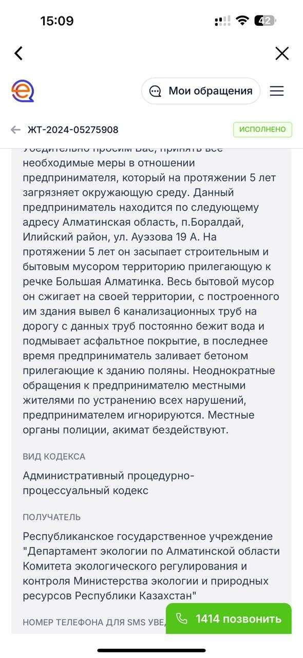 Там русло реки Большая Алматинка заполнялось строительным и другим мусором на протяжении многих лет, а государственные органы не могли этому противостоять. Спустя несколько дней после публикации в Боралдай приехал депутат Мажилиса Бакытжан Базарбек, который встретился с активистами и сильно раскритиковал местных чиновников. Казалось, что ситуация начнёт улучшаться.