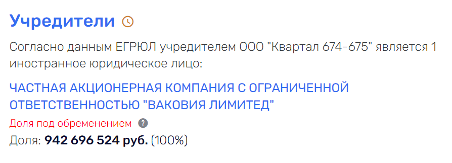 Однако, в открытых источниках записан на другой кипрский офшор "Ваковия Лимитед". И доли находятся в залоге у Сбера.