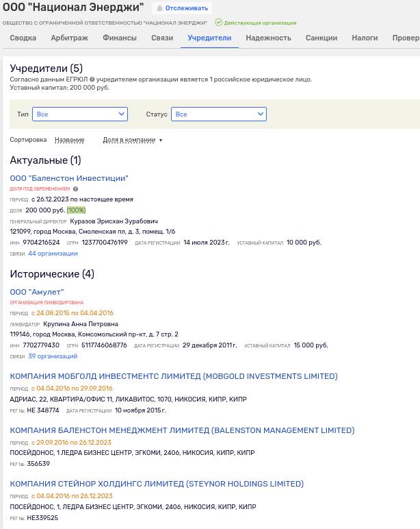В декабре 2023 года упомянутое «Национал Энерджи», коим управляет МЛП, передали под крыло ООО «Баленстон Инвестиции». До этого в биографии фирмы светились все три офшора - MOBGOLD INVESTMENTS LIMITED, BALENSTON MANAGEMENT LIMITED и STEYNOR HOLDINGS LIMITED.