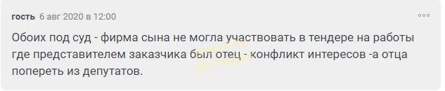 «На объект я приходил как депутат, а не как отец руководителя фирмы “ЦЭСИМ”. Я ни на какие недочёты глаза не закрывал, а даже, наоборот, ещё внимательнее проверял объекты. В том числе и из-за того, чтобы потом не было разговоров о какой-то аффилированности или что я кого-то прикрывал».