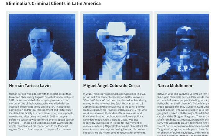 Недавно французское издание Forbidden Stories опубликовало часть из внутренних документов испанского агентства по управлению репутацией Еliminalia, из которых следует, что его основатель Диего Хименес Санчес превратил свою фирму в мощную структуру, чистящую Интернет по заказу богатых клиентов и запугивающую журналистов.