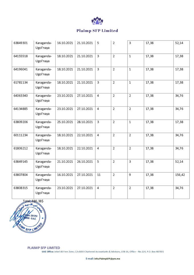 Также обращает на себя внимание счет Plaimp SFP Limited, выставленный на HAMPTON RESOURCES LIMITED – компанию, входящую в орбиту казахской компании ТОО EximArtis.