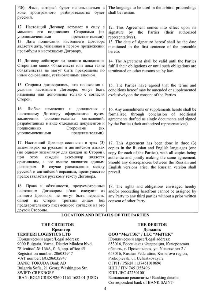 Суммы незначительные, но главное не это. Главное – эти документы подтверждают факт работы швейцарской компании Дмитрия Коваленко с российским углем.