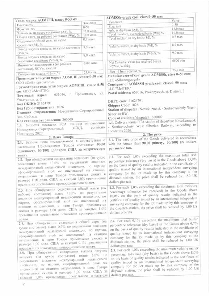 Это не единственная закупка. Ниже приводим выдержку из договора между Sibcoal и ANTEX INTERTRADE LTD (которая является также структурой Коваленко). Это так называемые «внутренние прогонки», но вопрос, откуда приехал этот уголь и куда он дальше поехал, остается открытым.