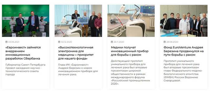Кроме того, здесь же можно найти данные об основных направлениях, в которых работает «Евроинвест»: