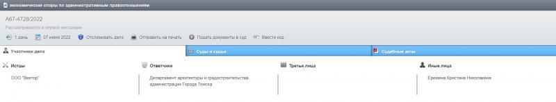 Признать незаконным отказ в выдаче разрешения на строительство, изложенный в письме от 7 апреля 2022 года. Обязать департамент архитектуры и градостроительства администрации Томска устранит допущенные нарушения прав и законных интересов общества с ограниченной ответственностью «Вектор» путём повторного рассмотрения заявления от 9 марта 2022 года. Взыскать с департамента архитектуры и градостроительства администрации Томска в пользу общества с ограниченной ответственностью «Вектор» судебные расходы, связанные с уплатой государственной пошлины в размере 3 000 рублей», – говорится в решении арбитражного суда Томской области.