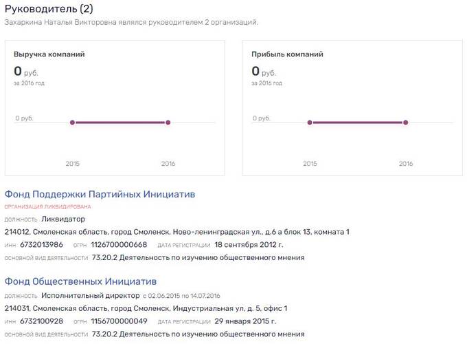 Вместо него уже возник другой подобный фонд - "Фонд Общественных Инициатив". Исполнительным директором последнего была Наталья Захаркина - она же выступала учредителем и ликвидатором прошлой организации. И она же при Островском оказалась включена в кадровый резерв Департамента Смоленской области по культуре.