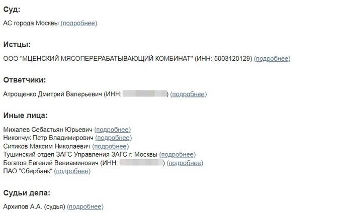 Теперь вернемся к Атрощенко он - фигурант уголовного дела о махинациях с поставками сухпайков для МВД и Минобороны. По уголовному делу, помимо Атрощенко проходили, учредитель ООО "Барышский мясокомбинат", директор группы компаний (ГК) Агросоюз "Любава" Михаил Лакшин, а также директор ГК "Агросоюз "Любава" Михаил Родников и директор Барышского мясокомбината Александр Котлинский.