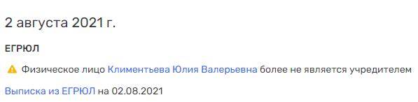 "Уши" Хмариных находятся достаточно просто. До августа 2021 года учредителем АО "Реал Титан" выступала интересная бизнесвумен Юлия Климентьева. Она же была гендиректором фирмы, а раньше была учредителем еще 10 организаций.