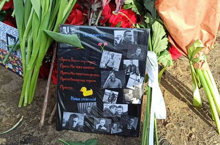 В годовщину похорон Алексея Навального на его могилу продолжают приносить цветы, записки и книги.
