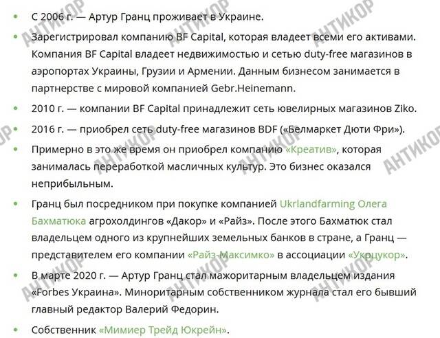 Более-менее такая же картина и у остальных компаний, некоторые из которых находятся в стадии ликвидации. В связи с этим обращает на себя внимание материал об Артуре Гранце на сайте Латифундист, где дается расшифровка того, чем занимаются фирмы Гранца, и он сам. Но, тем не менее, у налоговых органов Украины вопросов к Артуру Гранцу не возникает.