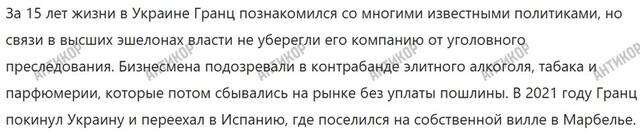 Возникает вопрос – откуда деньги? К тому же известно, что Артур Гранц с 2021 года проживает в Испании, где у него имеется собственная вилла в Марбелье, а в качестве любовницы содержит Светлану Лободу, которая имеет от него ребенка. Все эти удовольствия очень недешевы.