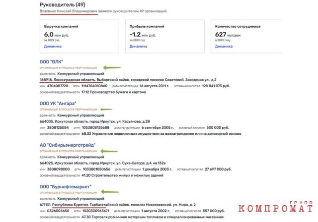 Интересно, что первый «собственник», акционерное общество "СибирьЭнергоТрейд", которому «посчастливилось» владеть объектом, находится под руководством Власенко Николая Владимировича, коему удается единовременно управлять 49 организациями с, каким минимум, примечательной географией расположения: от Ленинградской области до Бурятии. И все они находятся в «стадии реорганизации»: