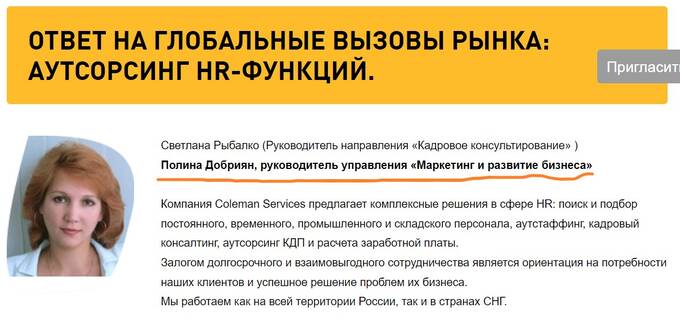 Почему о своей работе в Coleman Services в качестве руководителя управления «Маркетинг и развитие бизнеса» предпочитает молчать Полина Добриян – загадка. Но, кажется, не такая уж и большая – потому что, как и в случае с RBK Money, PayU и Wirecard, компания потеряла в результате ее деятельности немалые деньги.