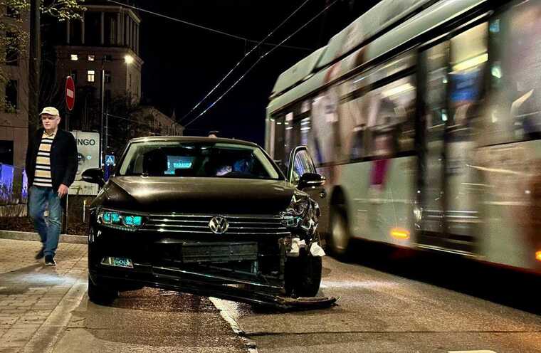 В центре литовской столицы столкнулись два автомобиля — VW Golf и VW Passat с дипломатическими номерами. По данным полиции, виновником стал автомобиль посольства Азербайджана.