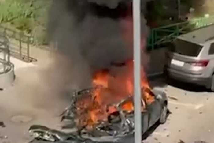 Видео первых минут после взрыва автомобиля с генералом Москаликом