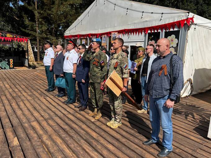 Возглавлял колонну с портретами солдат РККА руководитель Представительства Минобороны России в ЦАР полковник Сергей Суханов.