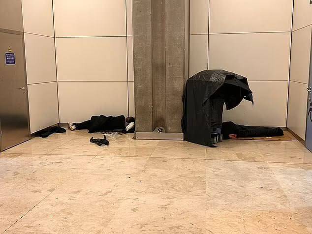 Бомжи-«пассажиры» спят на всех этажах терминала и в любом доступном месте. При этом справляют нужду где придётся.
