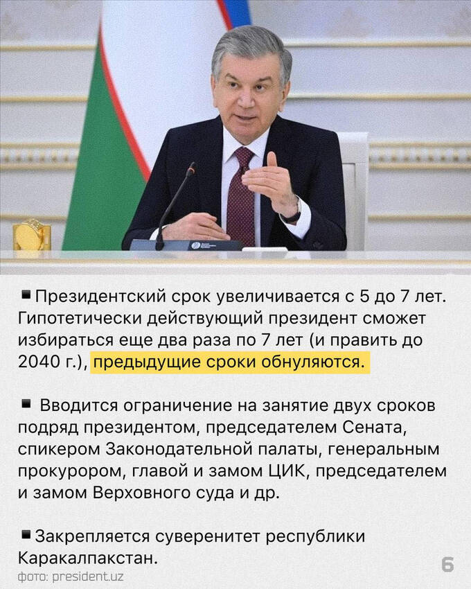 Так, действующий текст основного закона обновится на 65% — это большое обновление, Конституция очень серьёзно меняется. Все пять политических партий также поддержали конституционную реформу.