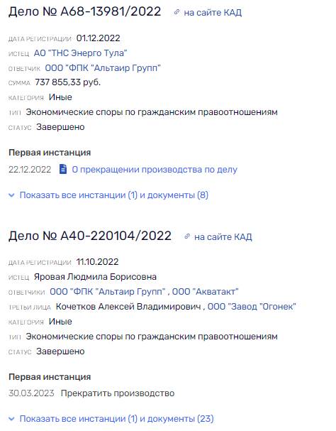 Здесь нужно сделать небольшой шаг назад. С 2016 по 2017 годы соучредителем упомянутого ООО "Мток" Живцова была достаточно "мутная" структура - "Финансово-промышленная компания Альтаир Групп". Т.е. логично предположить, что ФПК и Живцов были партнерами по бизнесу.