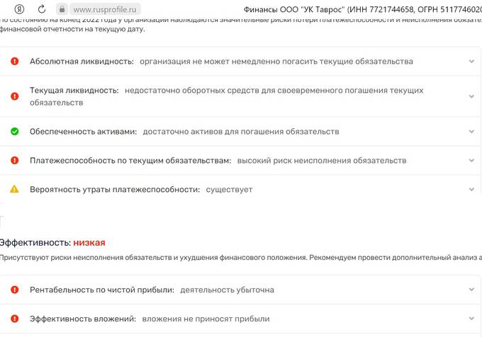 К слову сказать, по данным Rusprofile, финансовое состояние компании "Таврос" не так, чтобы в идеально.