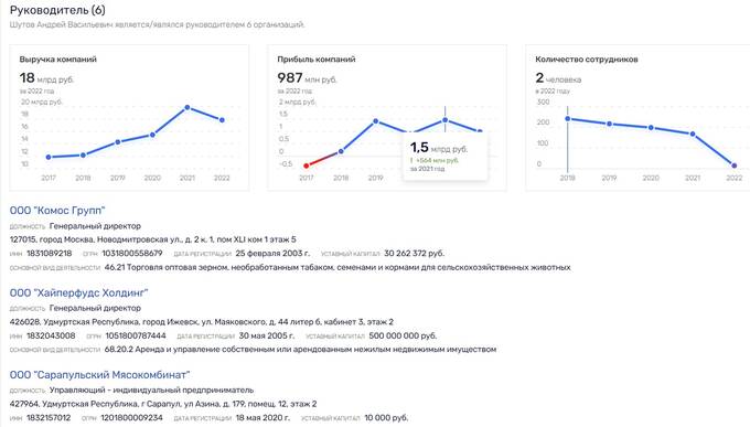Для другого претендента на шишхановскую птицефабрику, "Комос Групп" с головным офисом в Ижевске производство пищевого яйца уже входит в перечень основных направлений. По собственным данным, в 2021 году птицефабрики группы выпустили 1,22 млрд яиц, занимая по этому показателю четвертое место в России. Агрохолдинг принадлежит ООО "Хайперфудс Холдинг", которое в равных долях контролируют руководитель "Комос Групп" Андрей Шутов и предприниматель Андрей Осколков. Андрей Шутов уже попадал в поле зрения The Moscow Post, когда мы писали о возможных претендентах на Ижевский аэропорт.