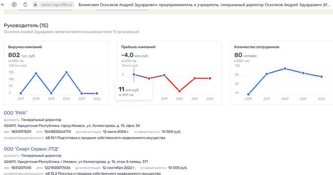 Об Осколкове также писал The Moscow Post– о его намерении ухватить значительную часть ресторанной сети KFC в Ижевске. Хотя сильно удачливыми бизнесменами обоих не назовешь: у Осколкова например, руководимые им компании так и не смогли выйти на плюс в прибыли.
