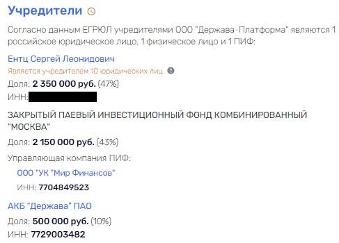 Говоря простым языком, Сергей Ентц мог попытаться сделать деньги из воздуха, но наткнулся на действия ЦБ и вынужден был исполнить предписание регулятора. А вышеназванные компании - весьма примечательные. Например, "Держава-Платформа" до сих пор на 47% принадлежит лично Сергею Ентцу. Остальное - за АКБ "Держава" и закрытым паевым инвестфондом, за которым может скрываться любой собственник, включая офшорные компании.