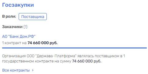 А еще интересней то, что эта компания, пойманная на махинациях с облигационными займами, оказалась подрядчиком госкорпорации "ДОМ.РФ" на 74 млн рублей. Контракт всего один - но какой: на "оказание услуг, связанных с предоставлением доступа к информационно-аналитической системе "Держава Онлайн" и предоставлением информации из информационно-аналитической системы "Держава Онлайн".