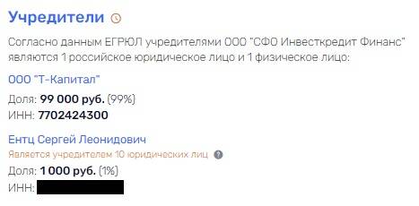 Среди прочих, Сергей Ентц является миноритарным совладельцем ООО "СФО Инвесткредит Финанс", где 99% принадлежит ООО "Т-Капитал". Кстати, наверняка ООО "СФО Инвесткредит Финанс" могло бы заинтересовать следователей, ищущих деньги ВИМ-Авиа - на балансе структуры оказалось активов почти на 800 млн рублей, так что пусть Ентц в случае чего не прибедняется.