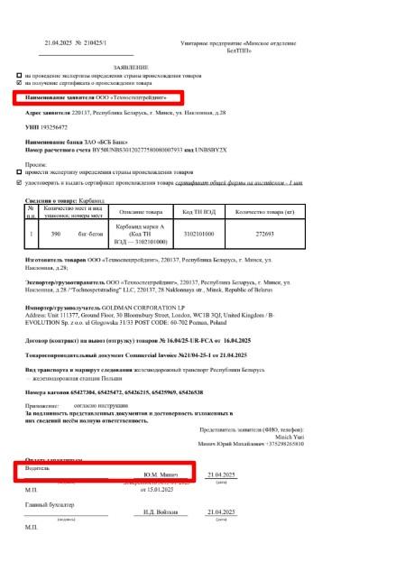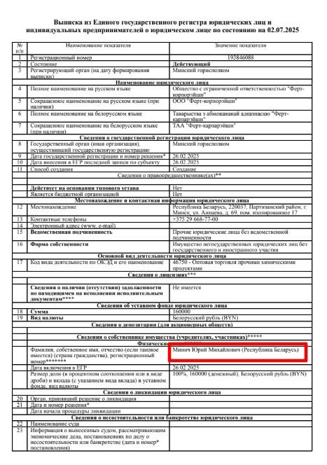 Второй новой фирмой-спецэкспортером — ООО «Ферт-корпорэйшн» — владеет и управляет гражданин Беларуси Юрий Минич, который по совместительству работает водителем в компании «Техноспецтрейдинг».
