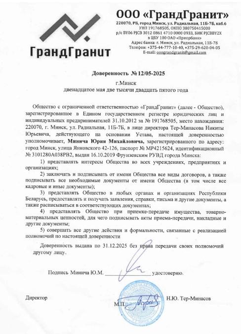 В 2023 году он получал зарплату в компании «ТехноспецтрейдингЭкспорт». 12 мая 2025 года Никита Тер-Минасов выписал Миничу доверенность на представление интересов компании «ГрандГранит».