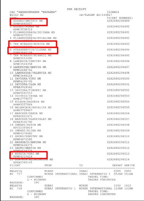 Косвенно связь всех фирм Арутюняна подтверждает еще один факт. Собственники «ГрандГранита» Тер-Минасов и «Ферт-корпорэйшн» Минич, директор «Техноспецтрейдинга» Гошко и руководительница польского TST PL Ульяна Атрашкевич приобрели билеты на один и тот же рейс компании «Белавиа» из Минска в Дубай на 5 января 2024 года.