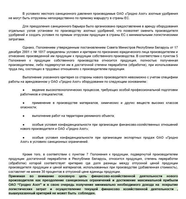 Такую скромность хорошо объясняет справка, направленная в Совет министров Беларуси концерном «Белнефтехим», в состав которого входит «Гродно Азот». В ней концерн признается в создания фирм-прокладок для «преодоления санкционных ограничений». Их назвали спецэкспортерами. Также в документе говорится, что спецэкспортер должен зарабатывать минимально — «на покрытие логистических затрат и осуществление текущей финансово хозяйственной деятельности».