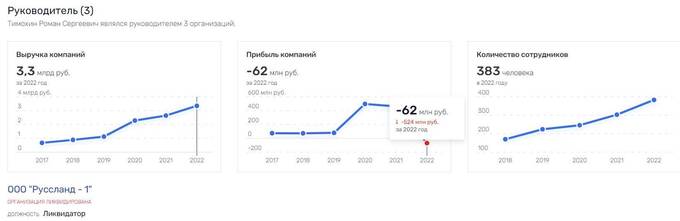 Если же брать в целом компании, которыми руководит Сергей Тимохин, то картина тоже не особо радужная: при неплохой в общем выручке, ощутимый такой "минус" в прибыли: