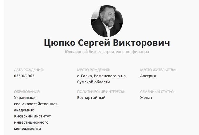 Прим этом не совсем понятно, где находится сам основатель благотворительного фонда имени себя Сергей Цюпко – в Украине или в Австрии, где живет его жена Елена Волошко, и где ему пришлось скрываться от гнева Валерия Хорошковского, который после смены власти в Украине в 2019 году сцепился с Сергеем Цюпко за активы Киевского ювелирного завода.