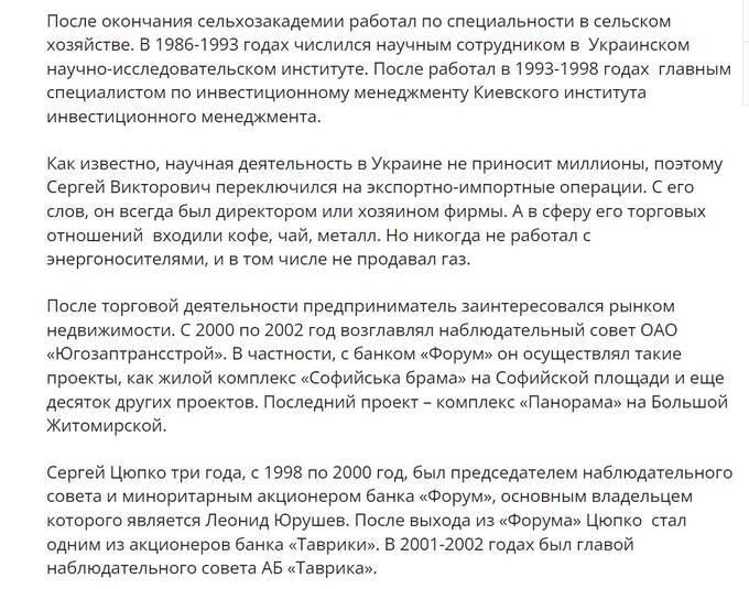 Как и чем заработал начальный капитал Цюпко – история умалчивает, но вот выдержка из его официальной биографии:
