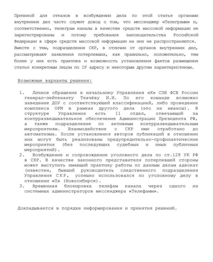 Генеральному директору Сибирской угольной энергетической компании (СУЭК) Рашевскому поручено проработать разные варианты запугивания канала “Советбезрынка”, включая запугивание уголовным делом о клевете, физические угрозы редакторам канала, техническая блокировка с помощью связей в Ростехнадзоре.