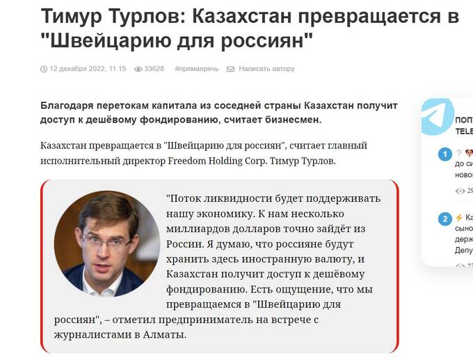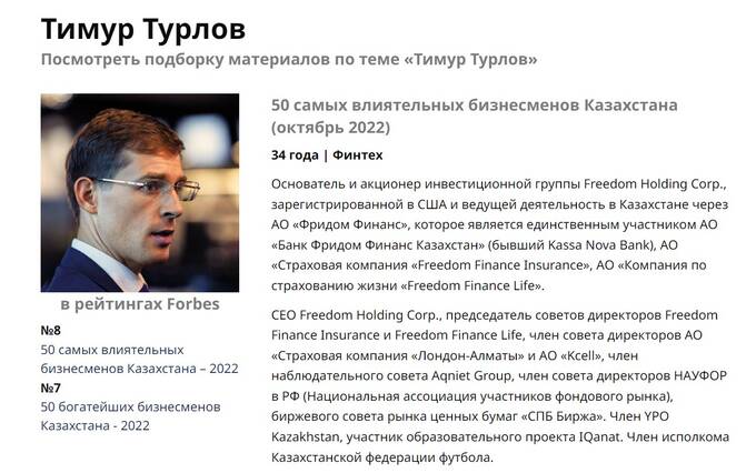 В прошлом году владелец Freedom Finance Тимур Турлов отказался от российского паспорта в пользу гражданства Казахстана.