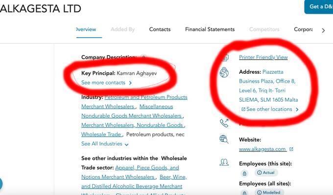 Alkagesta — компания, зарегистрированная на Мальте, формально основанная двумя гражданами Азербайджана: Камраном Агаевым (который также связан с Азербайджаном и Дубаем) и Орханом Рустамовым. Она была одной из компаний, занимающихся транспортировкой ливийской нефти.
