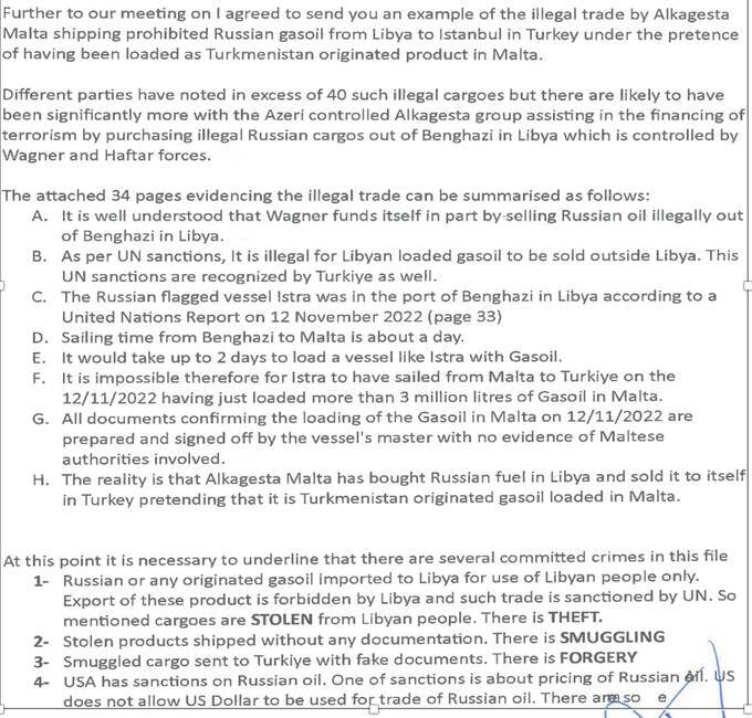 Азербайджанскую нефтяную трейдинговую компанию Alkagesta, работающую на Мальте, обвиняют в контрабанде ливийской нефти, пишет Euasia.news